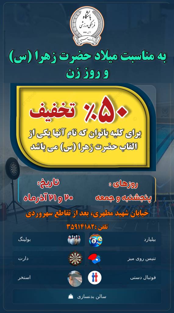 🔷️پنجشنبه و جمعه ۲۰ و ۲۱ آذرماه مصادف با میلاد با سعادت حضرت زهرا (س) کلیه بانوان همنام و یا در صورت دارا بودن یکی از القاب آن بانوی بزرگوار...