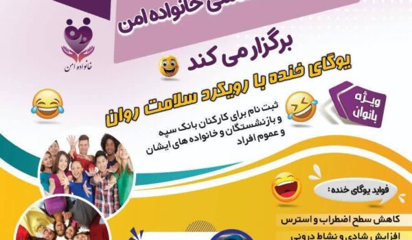 باشگاه بانک سپه دوره یوگای خنده با رویکرد سلامت روان ویژه دختران و همسران همکاران و بازنشستگان معزز برگزار می کند. شماره تماس جهت ثبت نام: 02188548463 – 02188540357